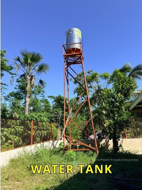 The property also includes a garage area and an elevated water tank system. The tank is already installed; however, it currently requires a water pump to become fully operational.