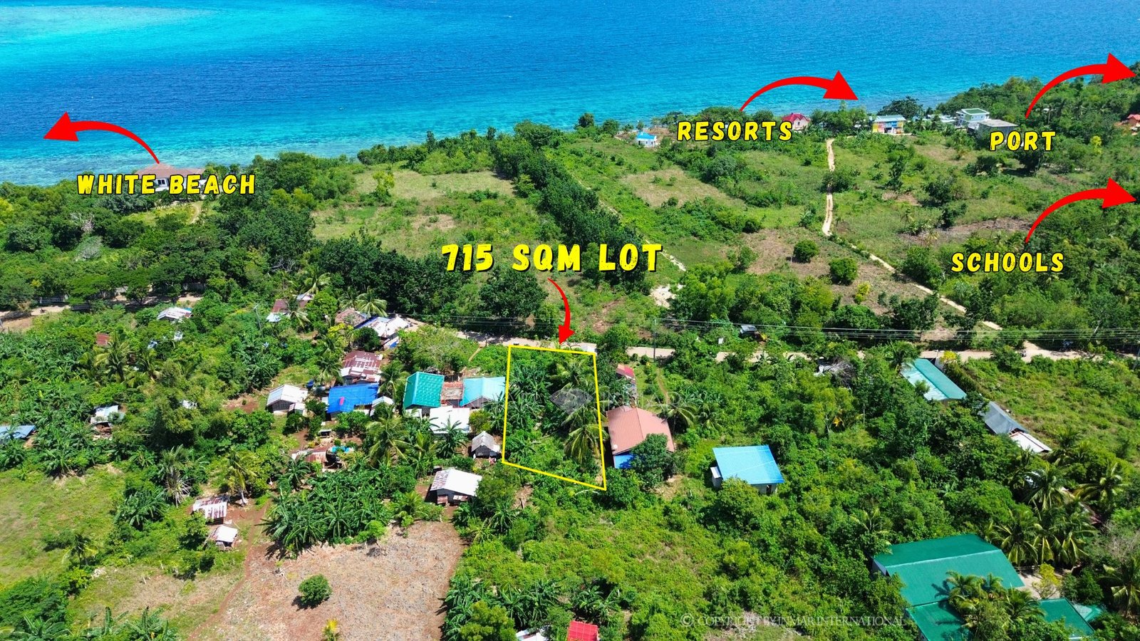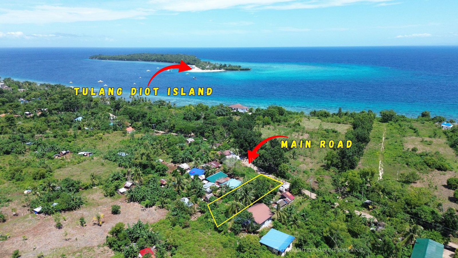 It is within walking distance to the white sand beach, local stores, resorts, elementary and high schools, and approximately 3 minutes from the port. Electricity and water lines are available in the area.Tulang Diot Island is only minutes away. While snorkeling or diving in the area, sea turtles can be seen. Freediving lessons are also available nearby. The property is also close to Timubo Cave and Calvary Mountain.